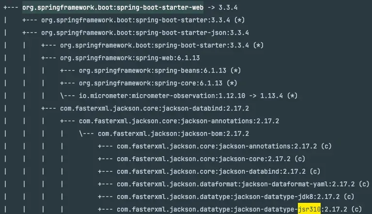 com.fasterxml.jackson.datatype:jackson-datatype-jsr310 모듈은 spring-boot-starter-web 의존성에 포함되어 있다. 그러나 해당 모듈이 포함되어 있음에도 여전히 LocalDateTime 역직렬화 문제가 발생하는 경우가 있다. 그 원인이 무엇일까?