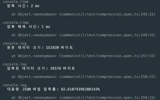 • 대용량 JSON 배열 압축률: 약 82.61%
