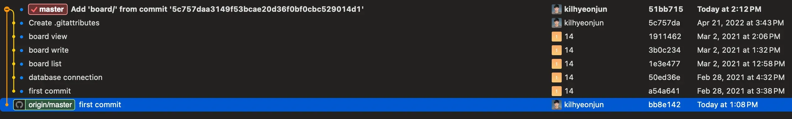 Repository를 생성때 Readme 생성에 체크를 하지않았다면 first commit이 존재하지 않을 것이다. 아래의 명령어를 통해 first commit을 해주자!
